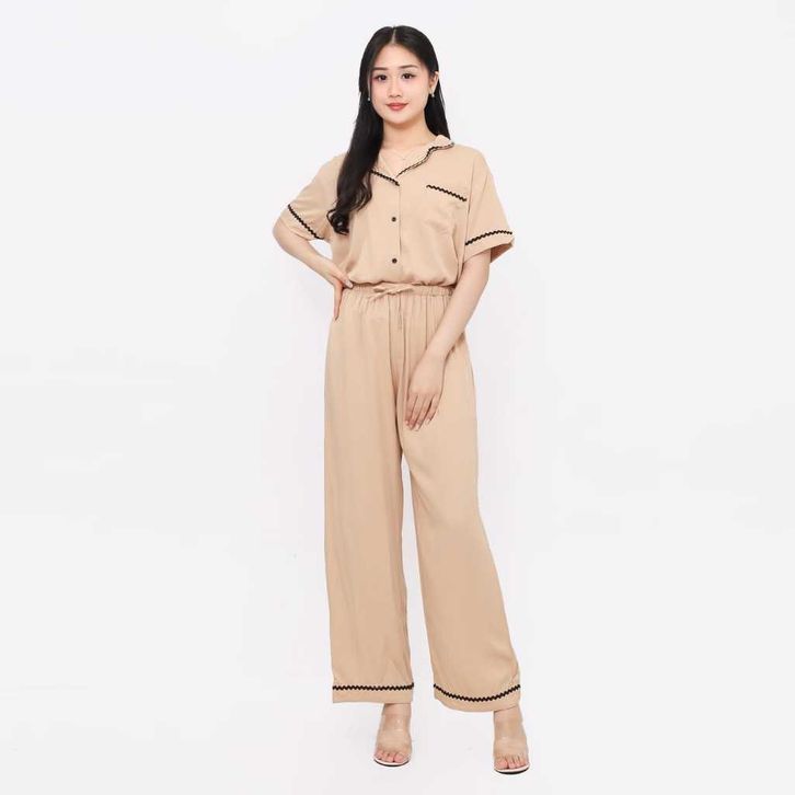 RK - Ladicesleepwear - Setelan Baju Tidur Bahan Rayon Twill Premium Polosan M0DEel List Zigzag Bahan Halus Dan Lembut