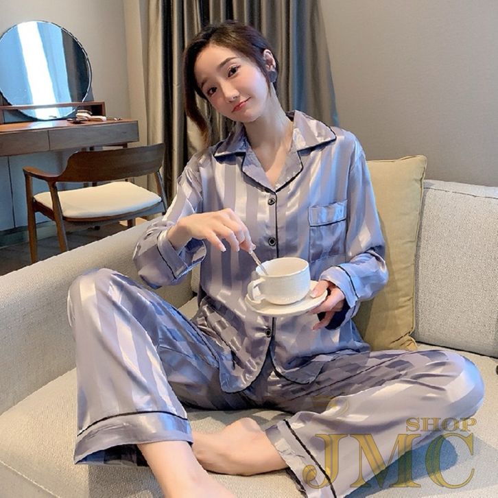 RK - baju tidur piyama salur garis dan kotak segi satin sutra standar sampai jumbo PP panjang