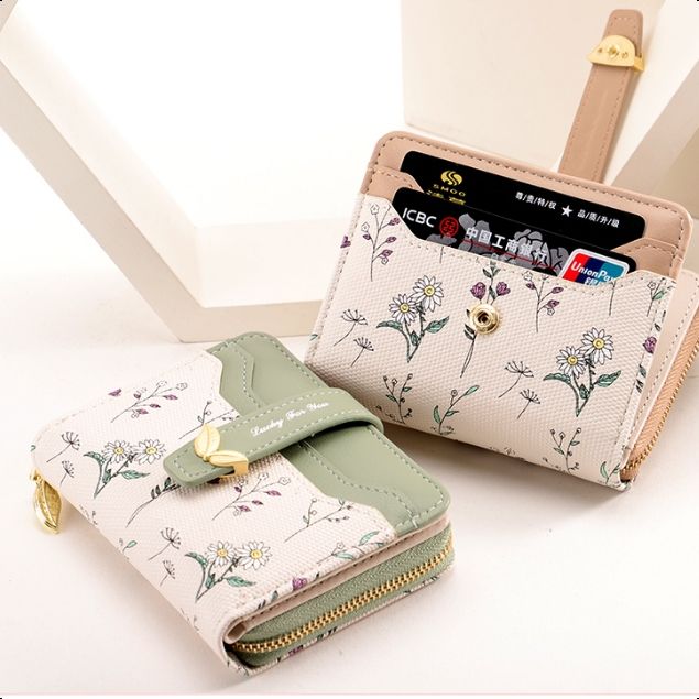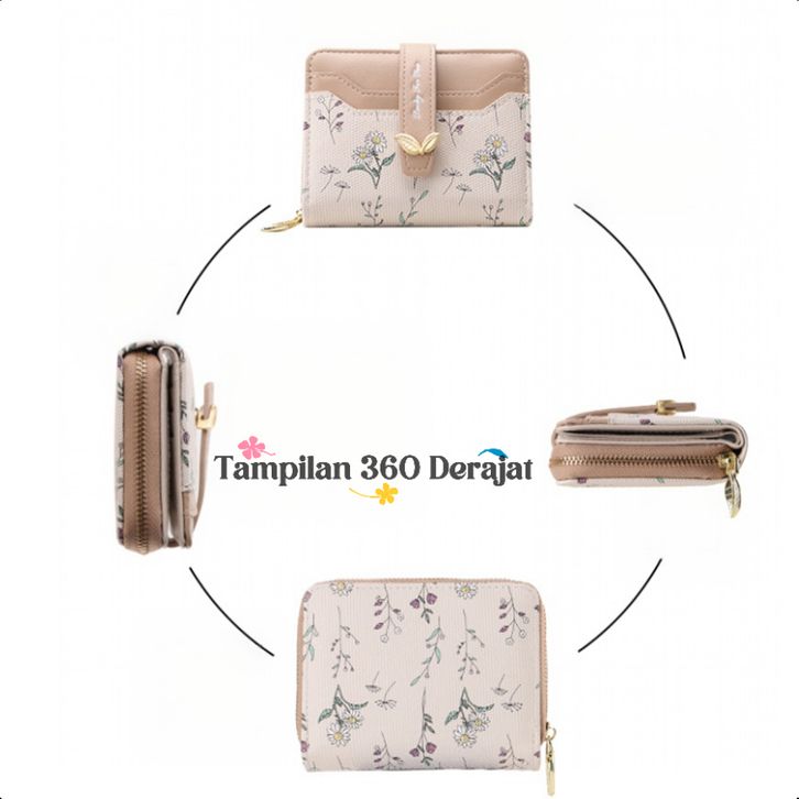 RK - kantong Wanita Motif Bunga Terbaru 2025 Gaya Korea Lipat 3 Mini Banyak Slot Kartu Warna Pastel Lucu dan Praktis