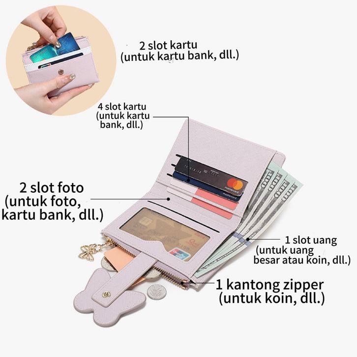 RK - SUPHIAR2025 M0DEel baru kantong wanita pendek dengan motif bordir kupu-kupu desain manis dan imut kantong K0IN tem