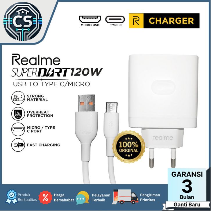 RK - Charger Realme Super Dart 120W Micro USB Port Fast Charging Original 100