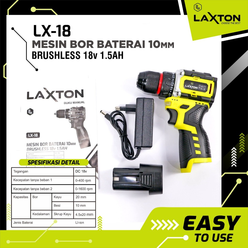 LAXTON LX18 cordless drill bor baterai 18V 10mm brushless MURAH LARIS
