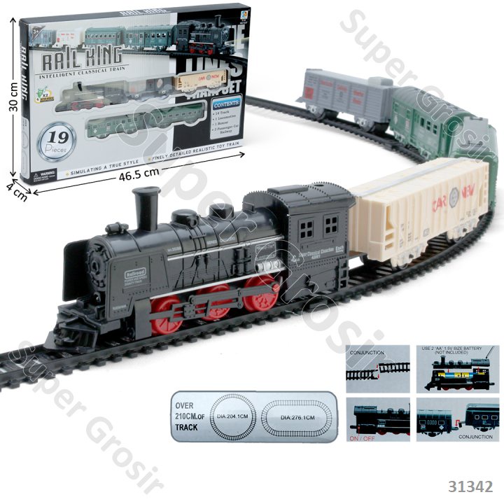 Mainan Anak Mainan Kereta Api Baterai 5 Gerbong + Track Baterai Jalan Lampu Rail King