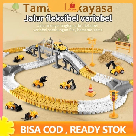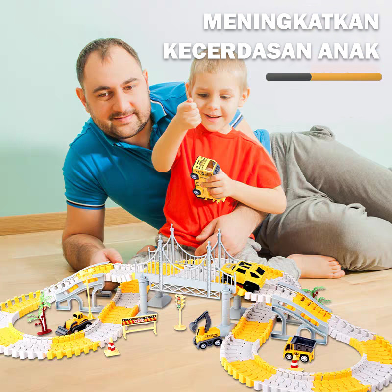 Engineering Mobil Dirakit DIY Track Listrik Jalur Kereta Api Mainan Anak-anak Cocok Untuk Usia 2 - 6 Tahun