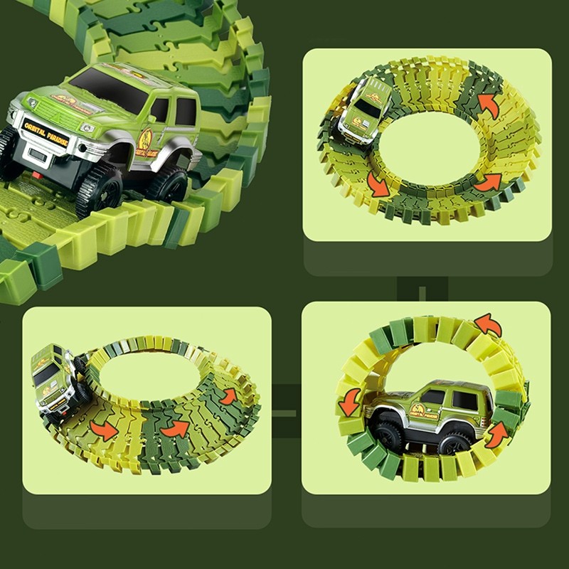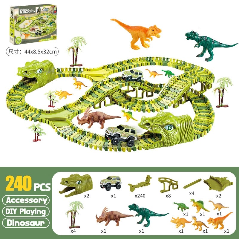 LEYI 260PCS Kereta Api Mainan Rel Panjang Dinosaurus Track Mobil Mainan DIY Rel Mobil Edukatif Anak