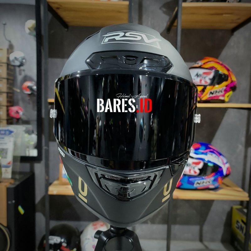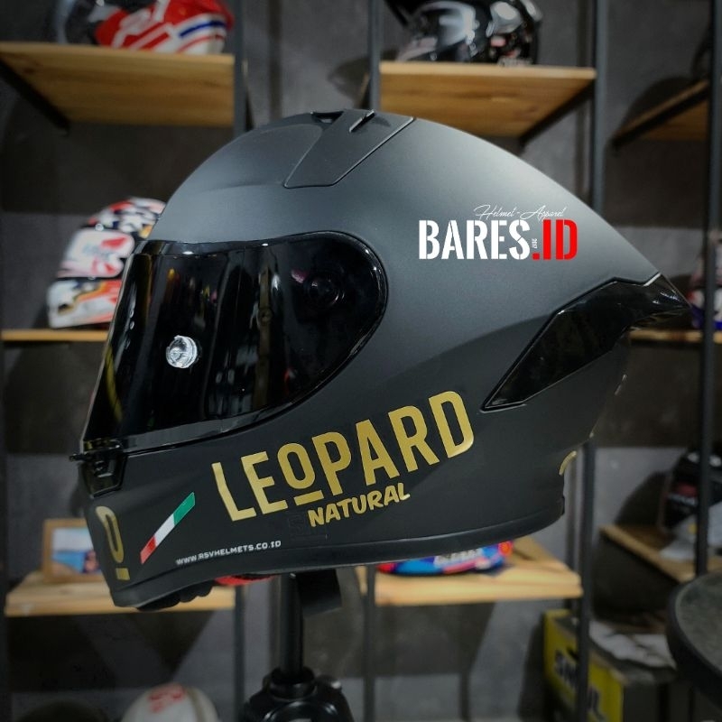 Helm RSV FFS21 Black Doff Paket Visor Dark Sticker Leopard Gold