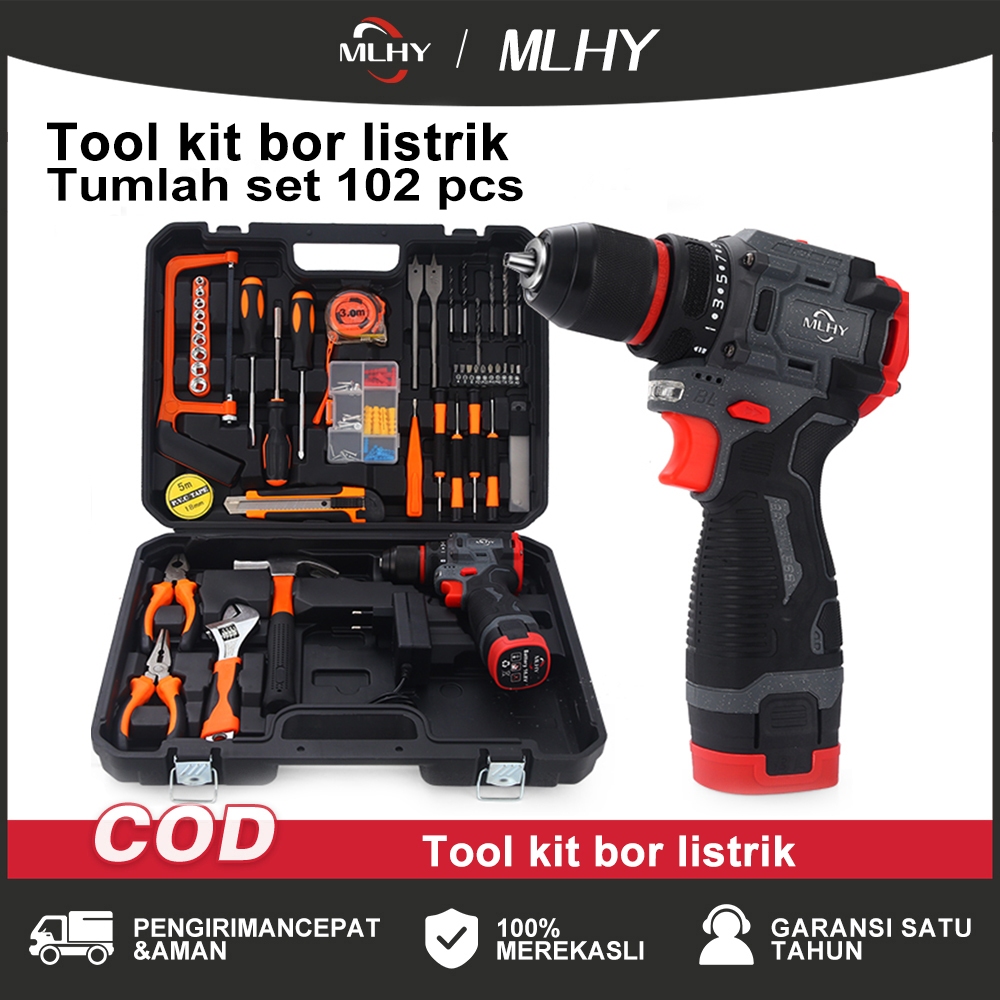 Toolkit Set Bor MLHY Toolkit Set Bor 102Pcs 16.8v Bor Listrik Cordless Tang Obeng Palu Kunci Pas Toolkit Alat Rumah brus