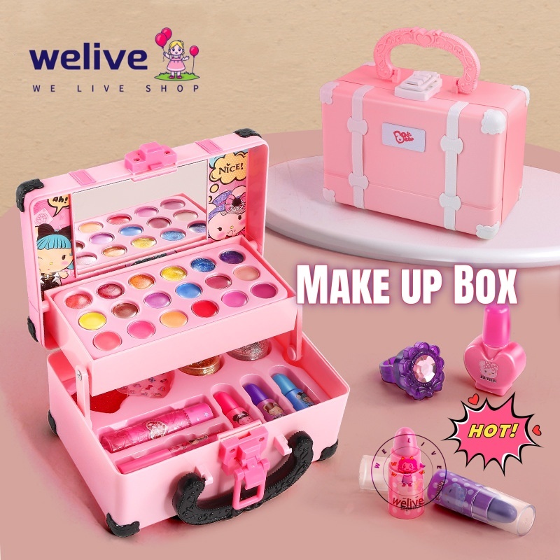 【Ready Stock】Mainan Anak 32 Pcs Mainan Kosmetik Kecantikan Anak Kotak Kosmetik Tidak Beracun Hadiah Ulang Tahun Kotak Ko