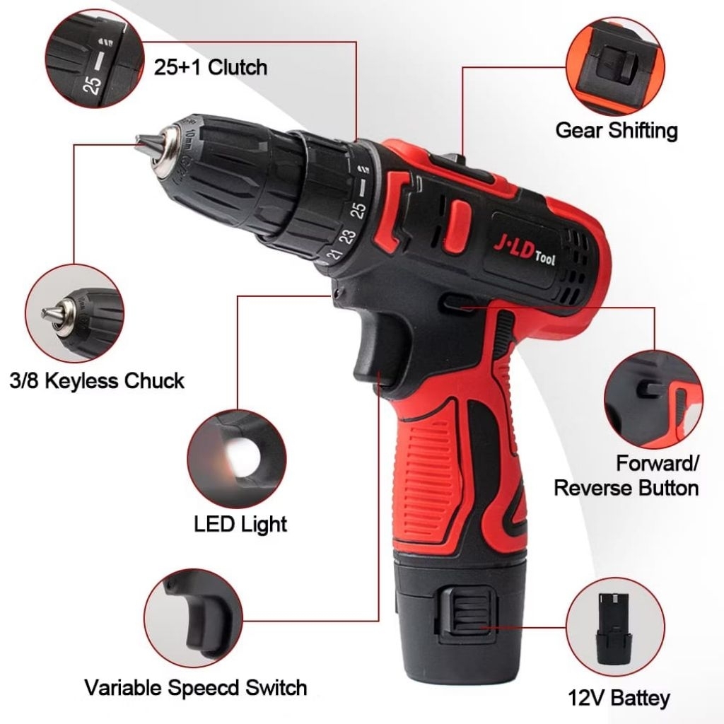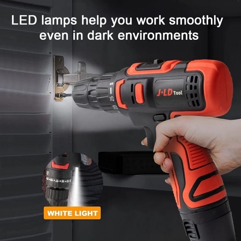 JLD 12Vf Mesin Bor Baterai Murah Berkualitas Bor Cas Jld Bor Case 2 Batre Fullset Portable 25+1 Cordless