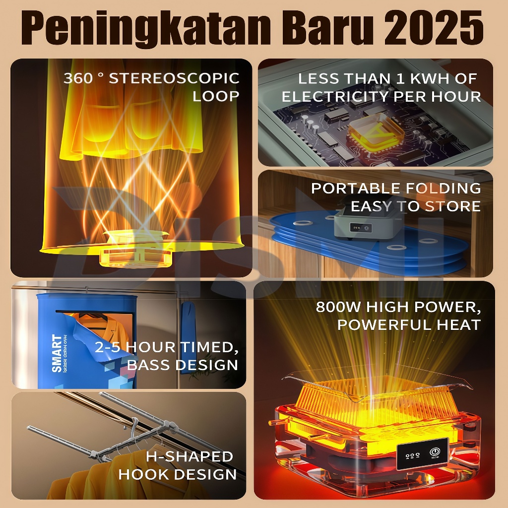 Mesin Pengering 800W Pakaian Portabel Pemanas Pengering Pakaian Lipat Listrik Anti Bakteri
