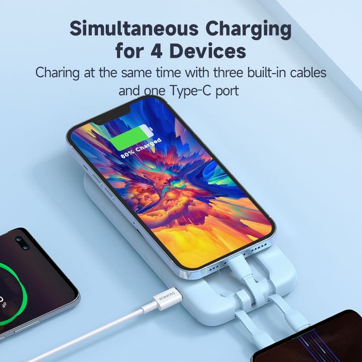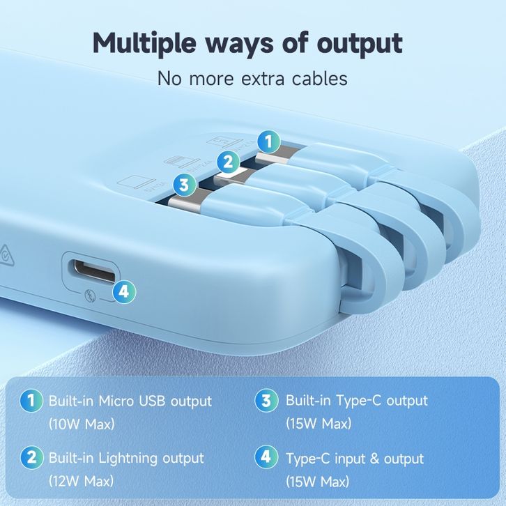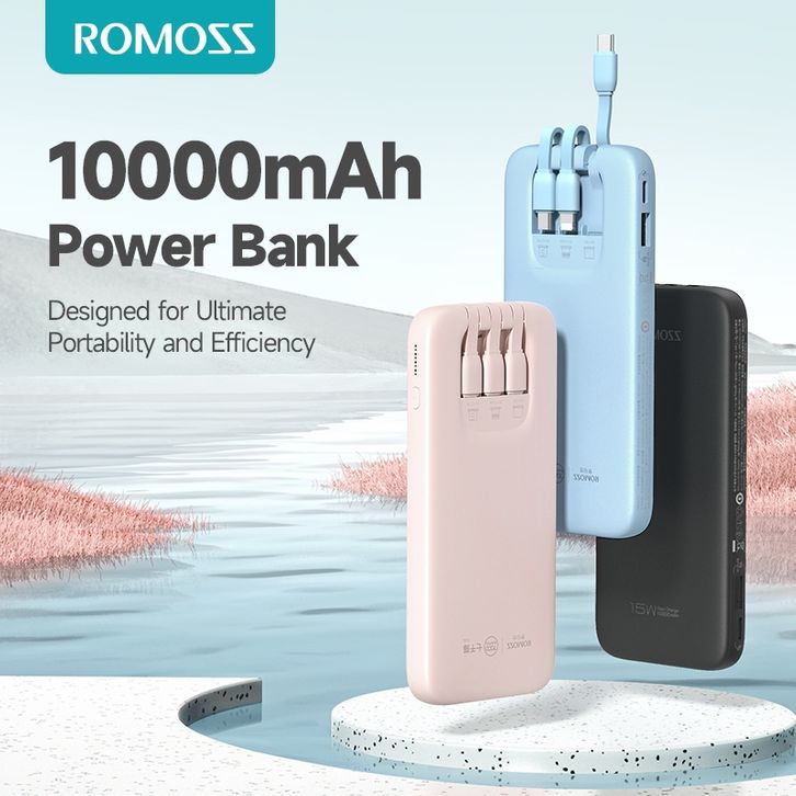 RK - Romoss Powerbank PHC10 Fast Charging Built-in 3 Cables 10.000mAh 15W