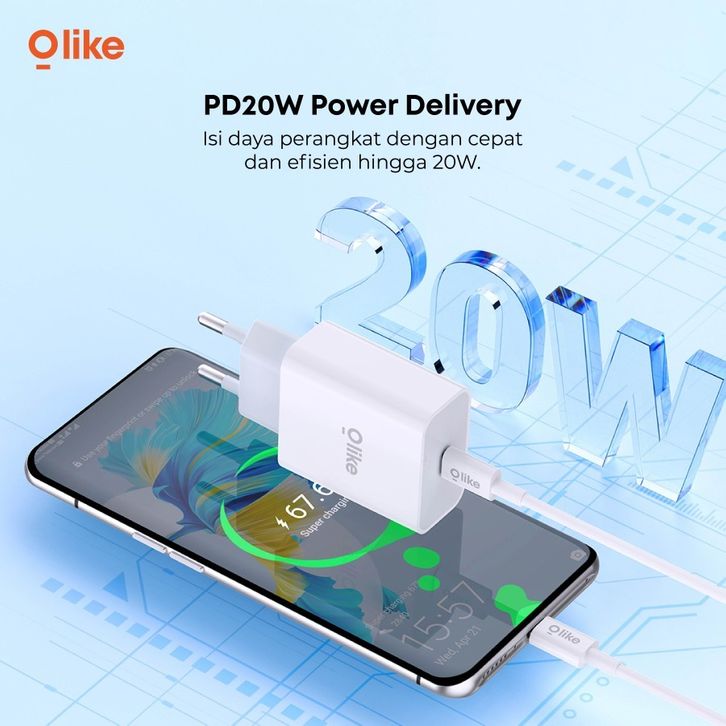RK - Olike C308CC20 Charger Adaptor Kabel Data Set 20W 3A USB TYPE C TO C PD QC Fast Charging