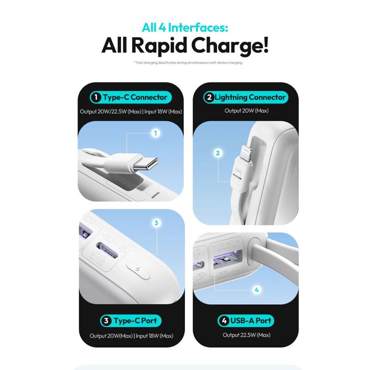 RK - Romoss Powerbank PPR10 Dual Cables Fast Charging 10.000mAh 22.5W