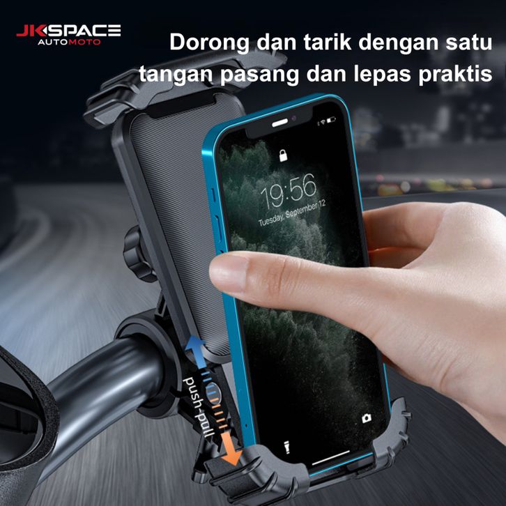 RK - JK SPACE Hitam Holder Motor Anti Maling Premium Bike Handphone Phone Holder HP Stang Sepeda Motor