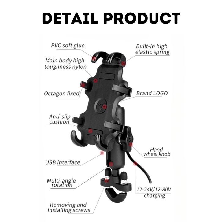 RK - Motowolf Holder Handphone Holder Hp Motor Usb Charge Fast Charging