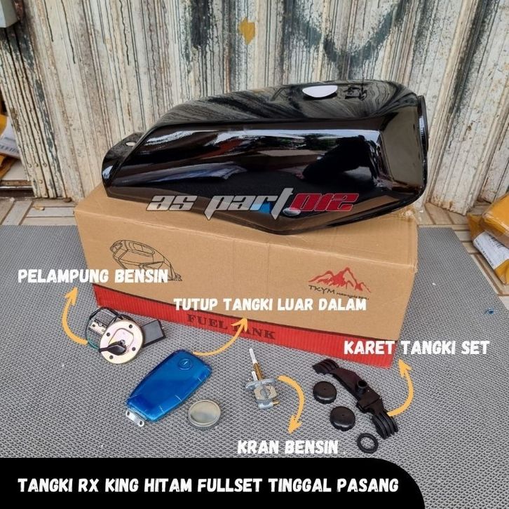 TANGKI RX KING HITAM FULLSET TUTUP TANGKI LUAR DALAM PELAMPUNG BENSIN KRAN BENSIN DAN KARET TANGKI SET.