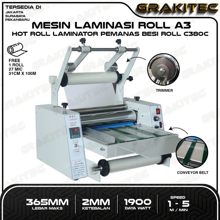Grakitec Mesin Laminating Roll A3 C380A | C380C - Hot Roll Laminator Pemanas Besi Roll Besar