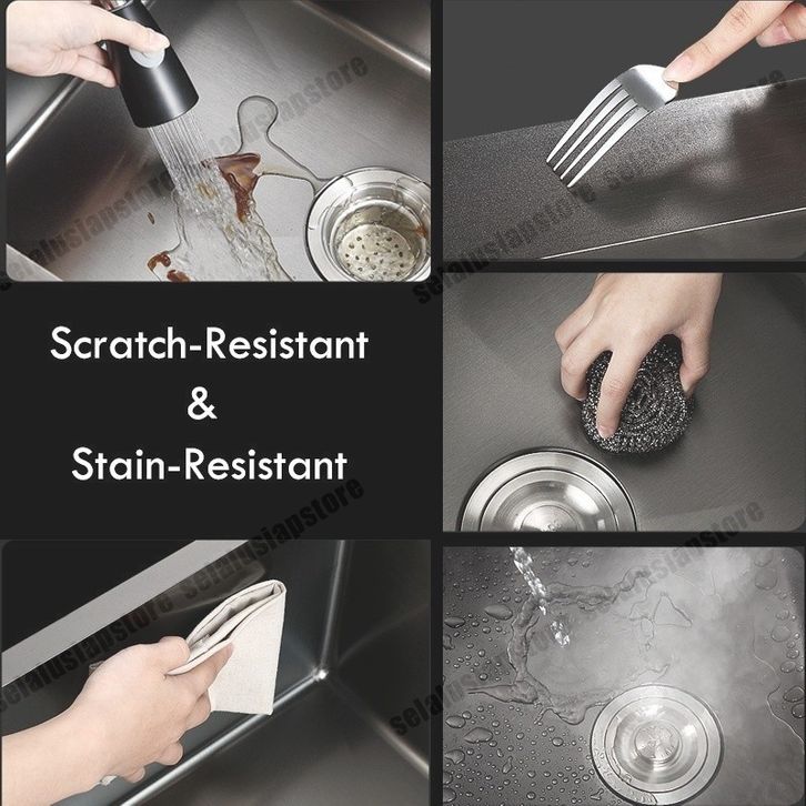 Bak Cuci Piring Stainless Steel Hitam ern - Ketebalan 2.7mm, Material SUS304, Anti Karat, Tahan Lama, Cocok untuk Dapur