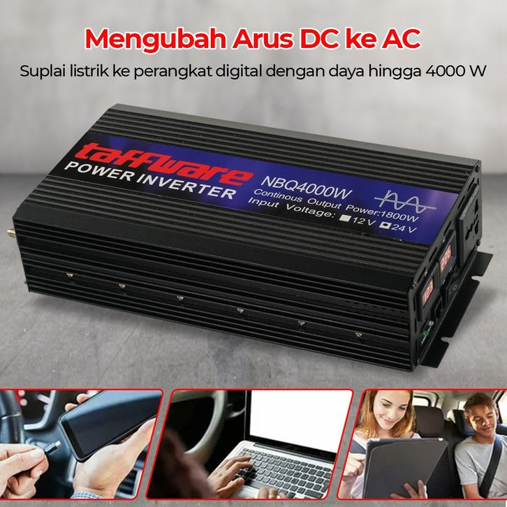Taffware Power Inverter Mobil Pure Sine Wave DC 12V 24V to AC 220V 4000W - NBQ4000W