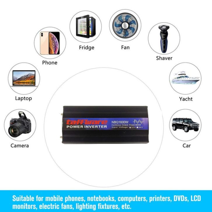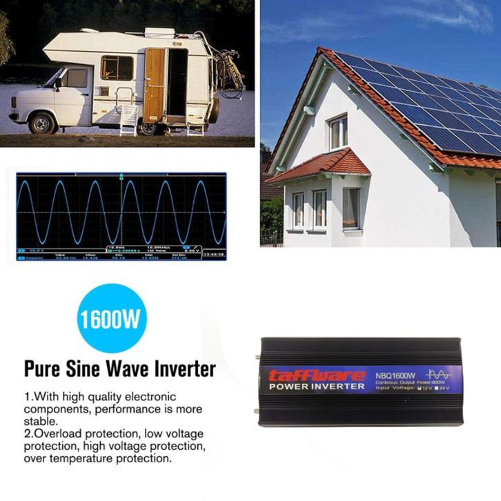 Taffware Power Inverter Mobil Pure Sine Wave DC 12V to AC 220V 1600W - NBQ1600W - Black