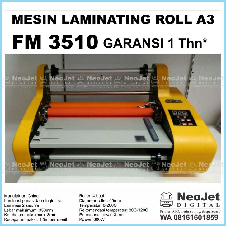 Mesin laminating roll A3 FM 3510 Laminasi FM3510 Kertas Doff Glossy Laminator