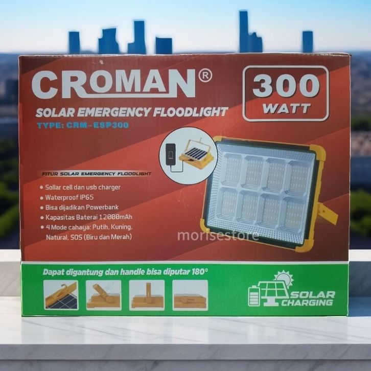CROMAN Lampu Emergency 300W Panel Surya Floodlight LED Baterai Kapasitas Besar