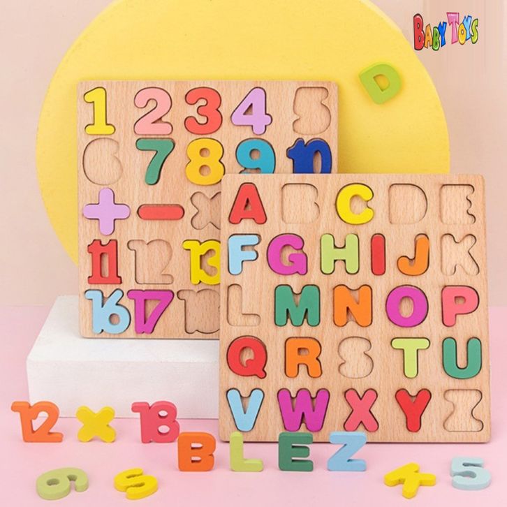 TERBARU BabyToys Mainan Puzzle Kayu Edukasi 3D Angka Alphabet Bentuk Mainan Anak Wooden Puzzle anahb