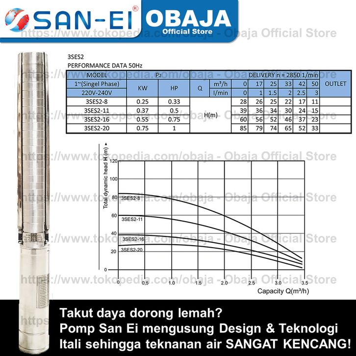 San Ei Pompa Satelit Stainless 3 inch 1 HP + Kabel 50 M San Ei/ Pompa Submersible Stainless