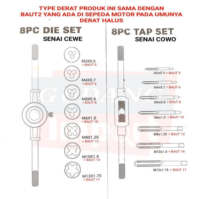 HAND TAP HANDTAP SET SENAI DRAT DERAT ISI 8 PCS - SENAI COWO 8PCS