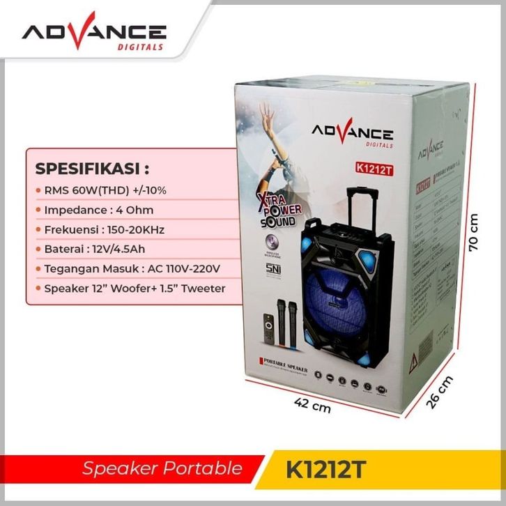 Speaker Bluetooth Portable Advance K1212T 12 inch Bonus 2 Mic Wireless