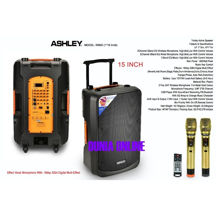speaker portable ashley IR600 / IR 600 / IR-600 15 INCH ORIGINAL new el dilengkapi filtur key control