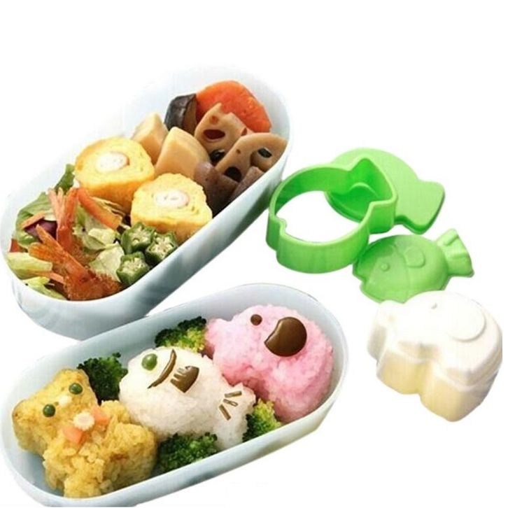 【Cetakan sushi】 3pcs / set Cetakan Nasi Bento Bentuk Kartun Gajah Ikan Beruang Untuk Alat Dapur Tusukan Bento atau Buah