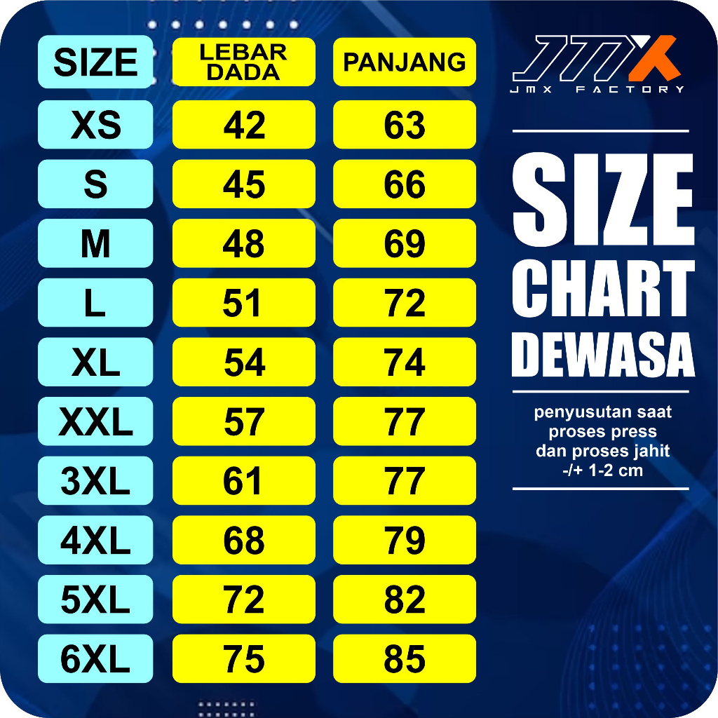 XS, S, M, L, XL, XXL, 3XL, 4XL, 5XL, size anak 0, size anak 1, size anak 2, size anak 3, size anak 4