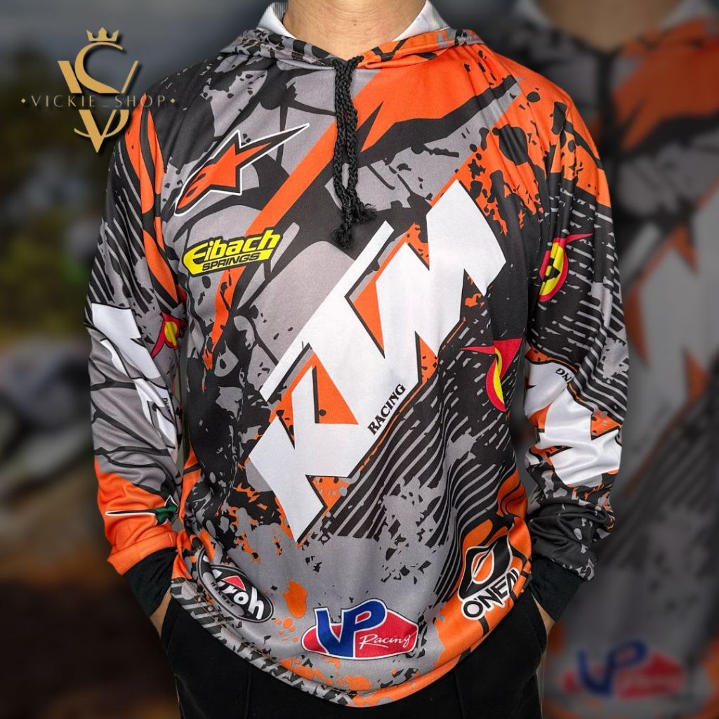 JERSEY MOTOCROSS KTM BAJU TRAIL FULL PRINTING LENGAN PANJANG KUPLUK/TOPI