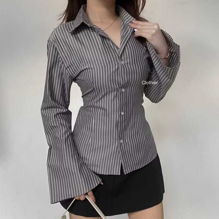 Kemeja Salur Wanita Kemeja Wispie Fit Body Stripped Terbaru Best Seller