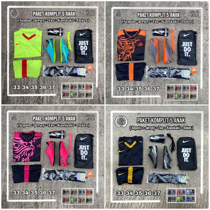 Paket Hemat 5 Sepatu Futsal Anak Kids Size 33-37 Ewaklok