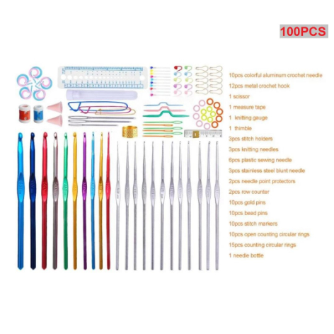 [CHARMANT] 100 set jarum rajut, set alat rajut, set pena hack, set peralatan merajut