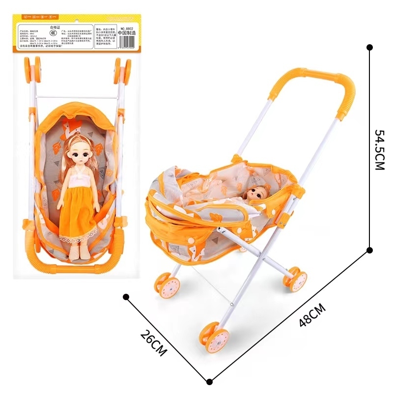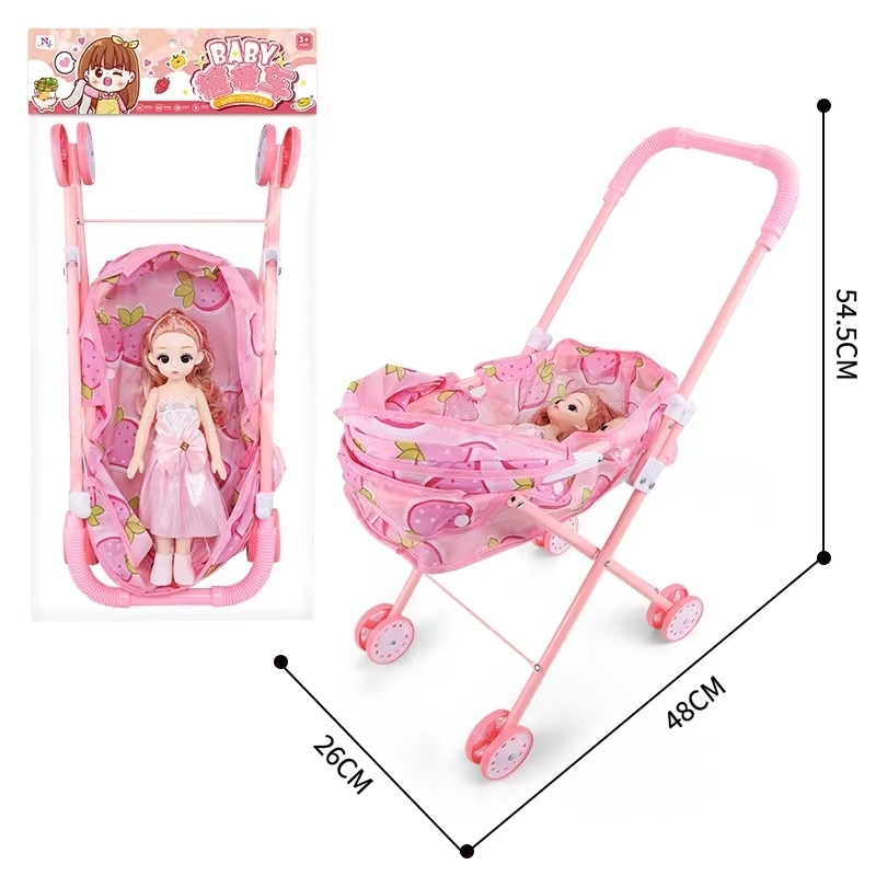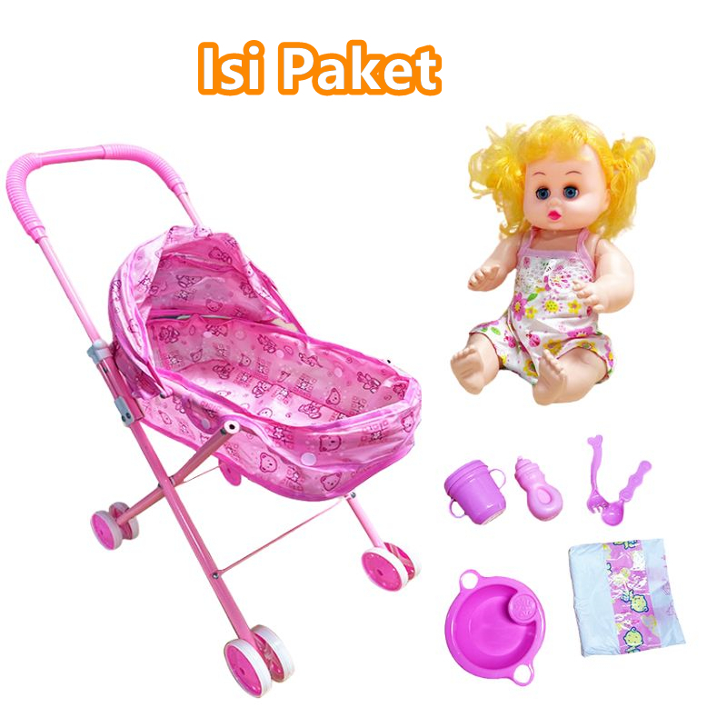 Mainan Boneka Mengedipkan Mata Bayi Set Stroller Boneka Baby Troli Anak Kereta Dorong Lengkap Aksesoris
