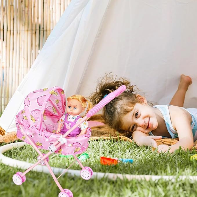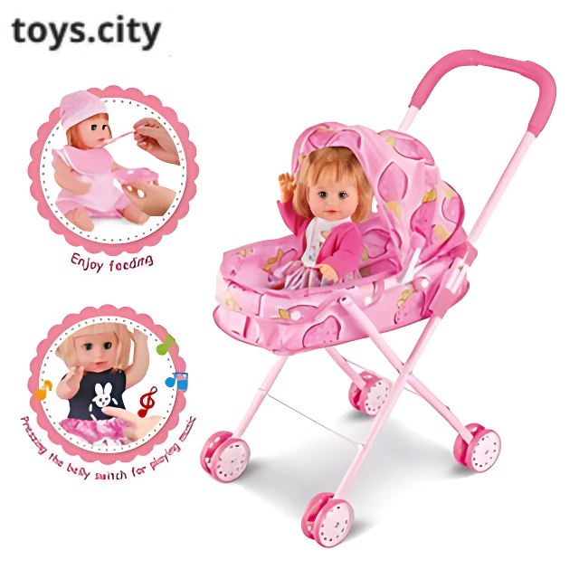 Mainan Stoller Boneka Kereta Dorong Bayi Set Boneka Troli Anak perempuan