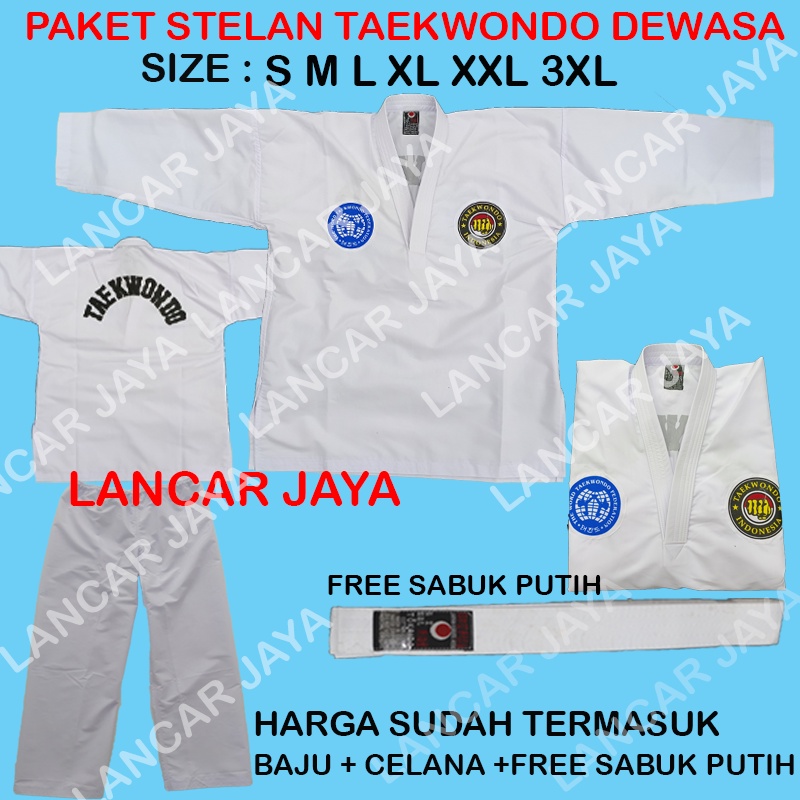 Baju Taekwondo Dewasa 1 Stel Sabuk Putih Bordir Depan