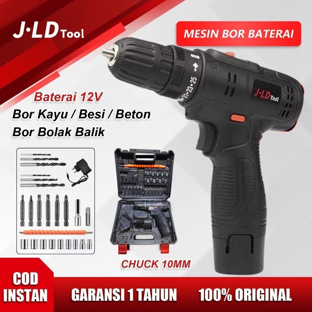 JLD 12Vf Mesin Bor Baterai Murah Berkualitas Bor Cas Jld Bor Case 2 Batre Fullset Portable 25+1 Cordless