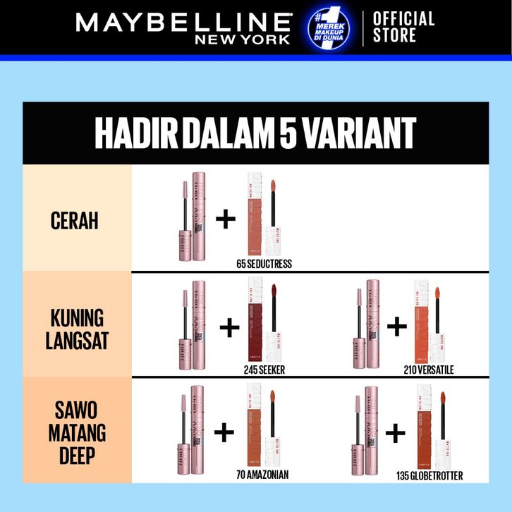 [Mall] Maybelline Official Store Long Lasting Duo - Sky High Waterproof Lipstick Lipcream Lipstik Maybelline Matte