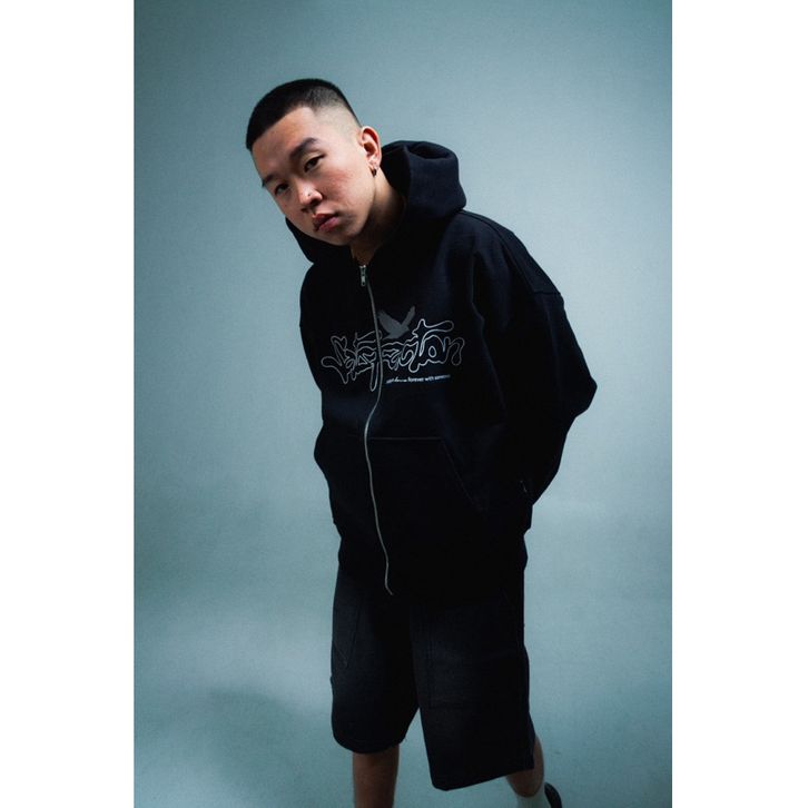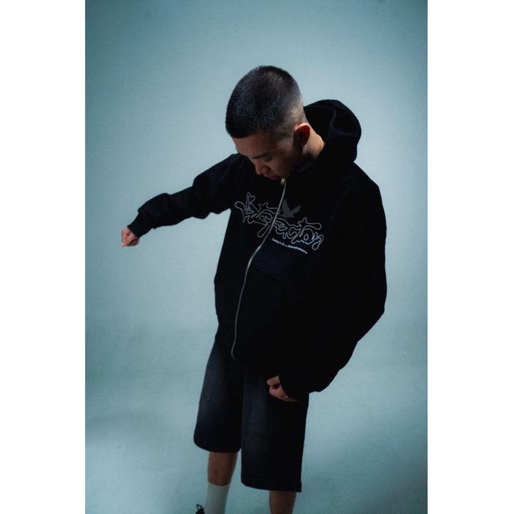TERLARIS SATISFACTION HOODIE ZIPPER BOXY 375GSM BIRDS BLACK