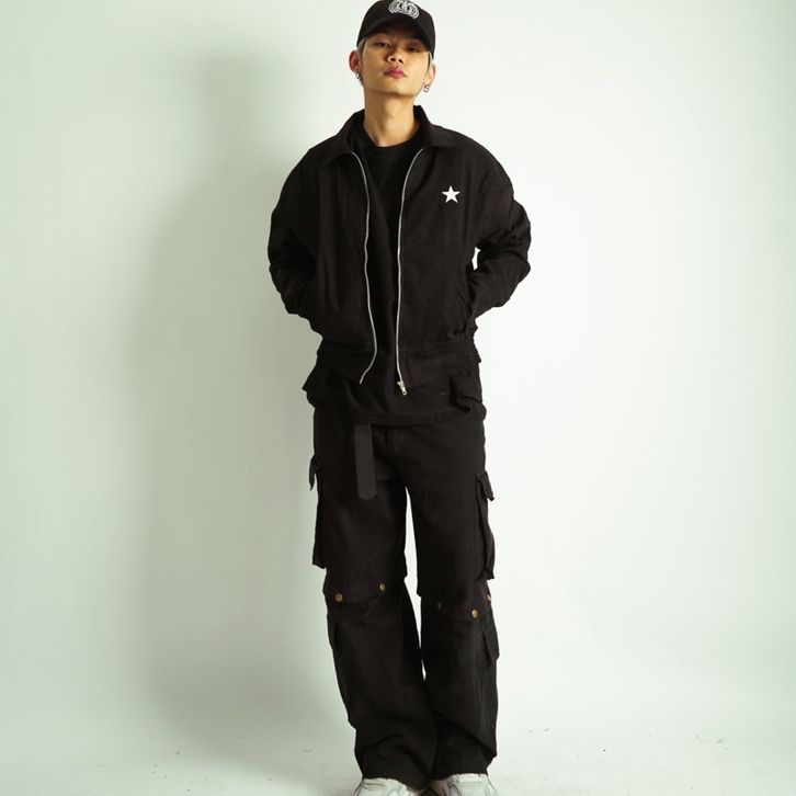 TERLARIS SATISFACTION WORK JACKET BOXY STAR PAIN BLACK
