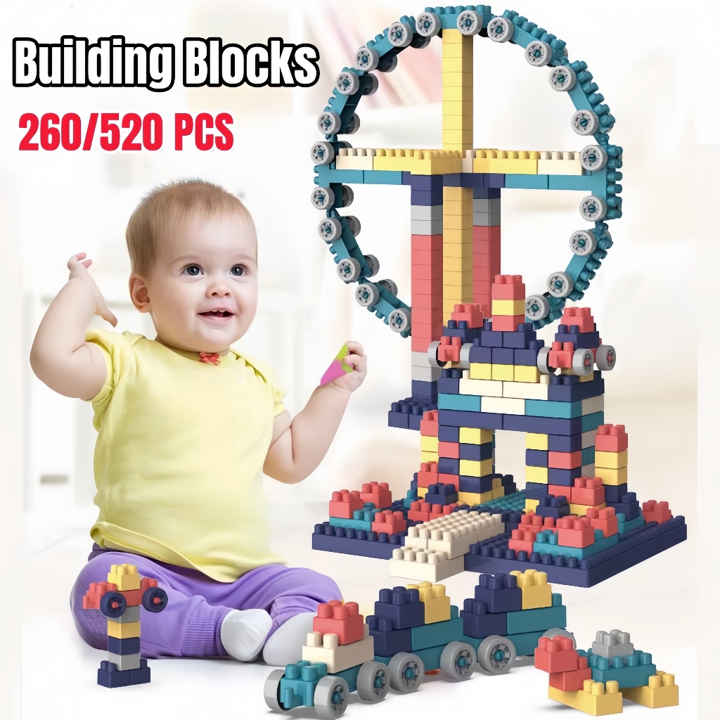 260/520Pcs Mainan Anak Block Susun Anak Brick Balok Edukasi Balok Bangunan Puzzle Perakitan
