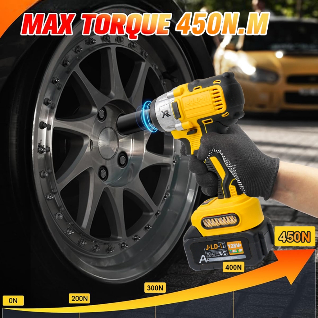 JLD Impact Baterai Brushless 128VF 2 Baterai 450N.M 3000RPM untuk Baut Mobil/Bor Cas Murah