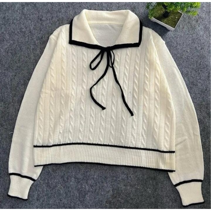 [Star] Kirana Bluse Rajut Motif Pita/Atasan Rajut Wanita Berkerah Korea Style
