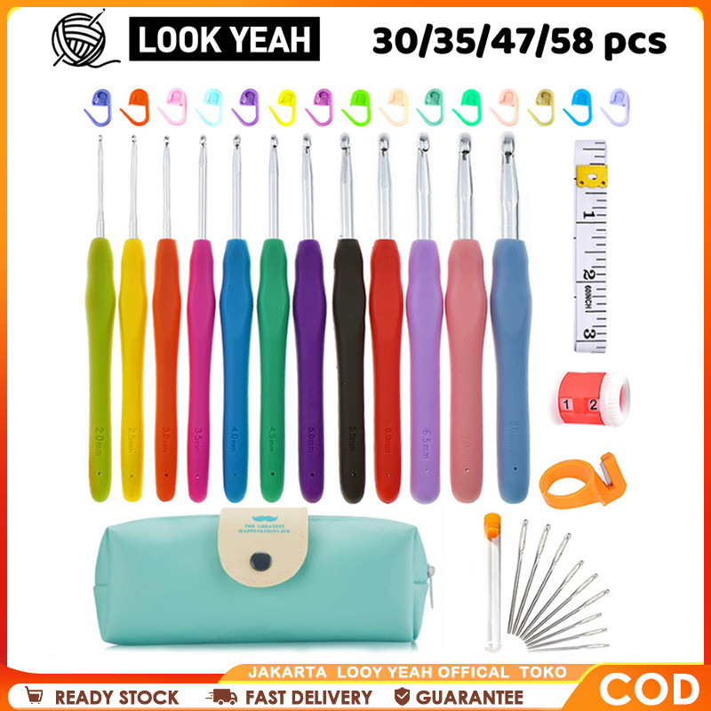 Crochet Set / Hakken Set / Alat Rajut / Set Crochet Lengkap + Benang / Menangani Jarum Rajut Kit