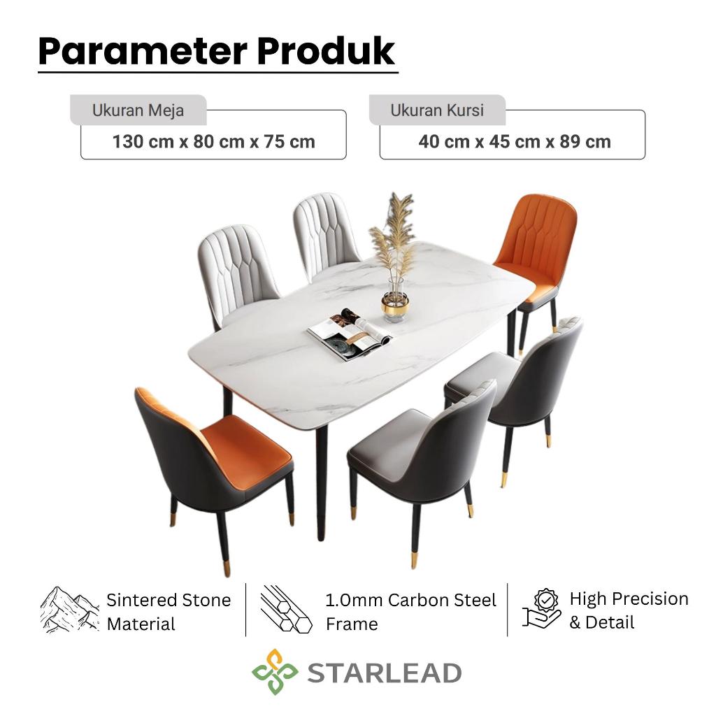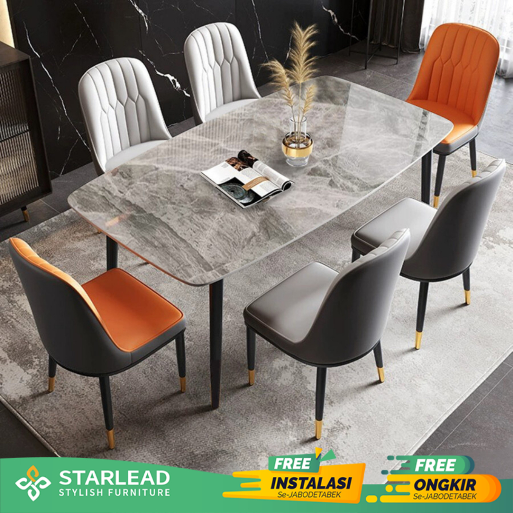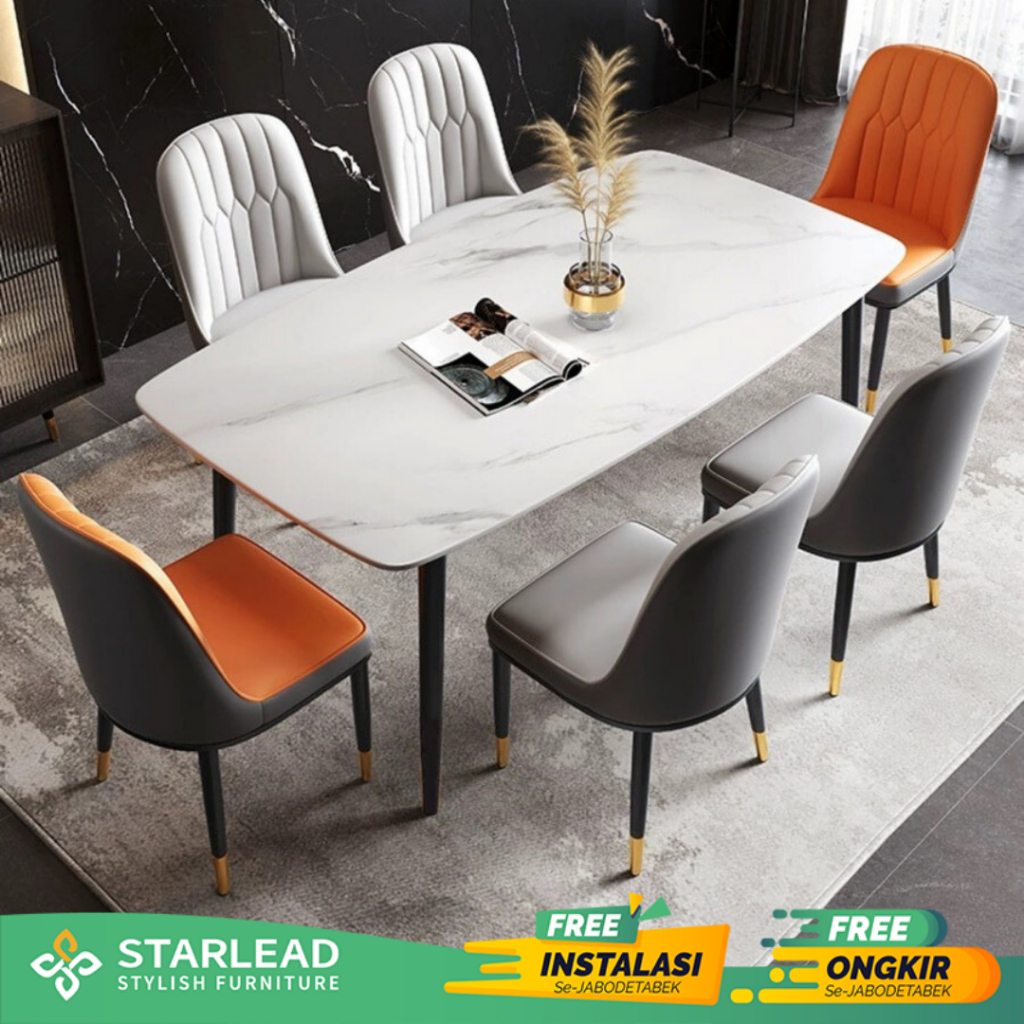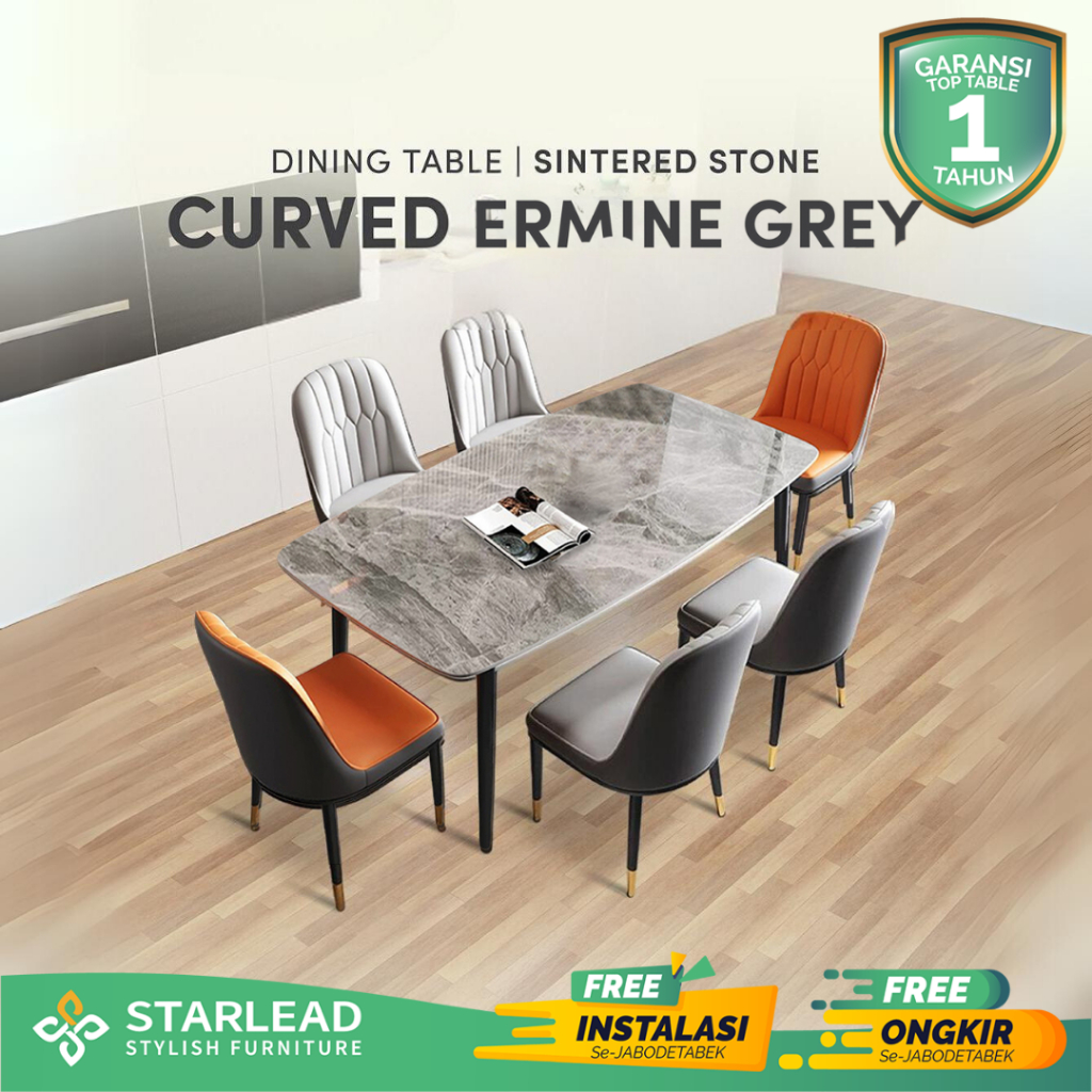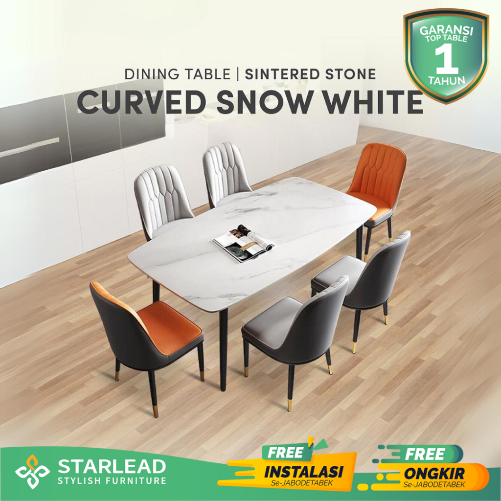 [Mall] MEJA MAKAN 6 KURSI SINTERED STONE CURVED SNOW WHITE MEJA MAKAN MURAH BISA CICILAN TANPA DP
