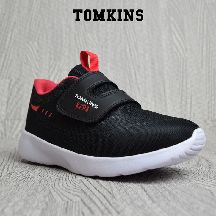 Sepatu Sekolah Anak Laki Laki Perempuan Sepatu Sneakers Anak TOMKINS Crystal Hitam Merah Sepatu Sekolah Anak TK